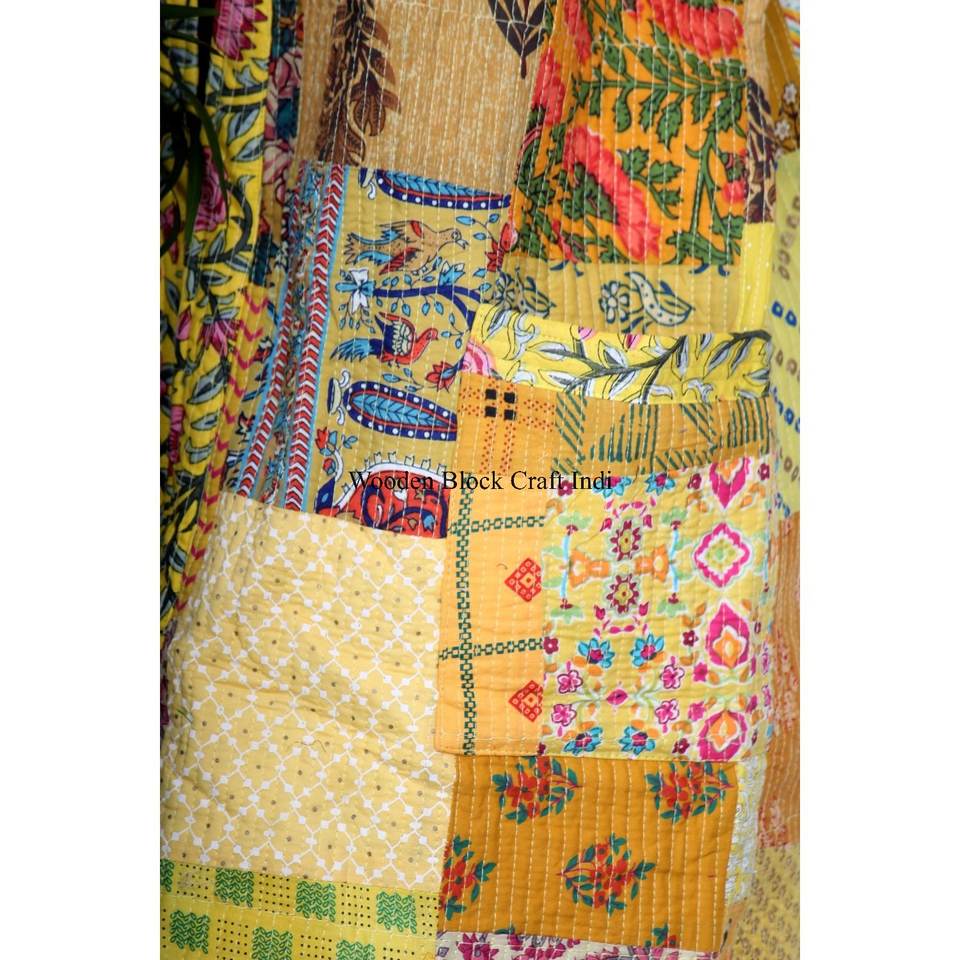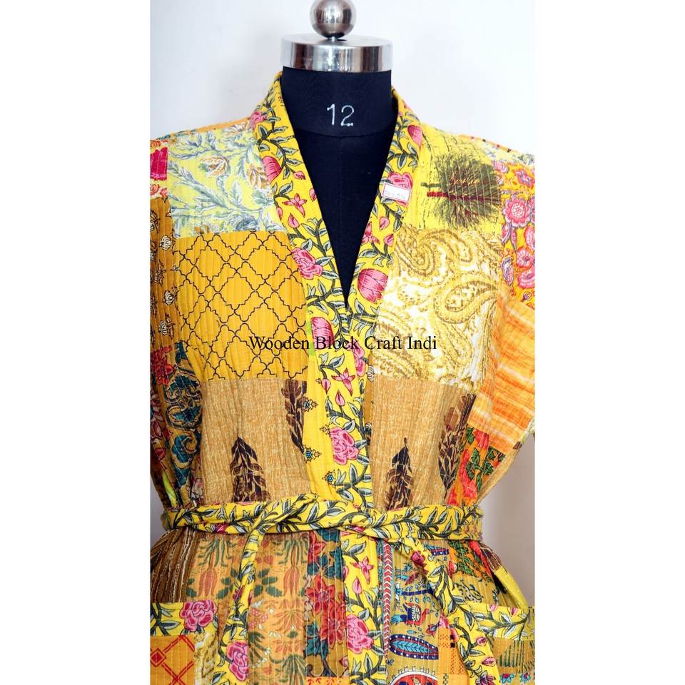 ชุดกิโมโนผ้าไหมปะติดหลากสี งานแฮนด์เมดสไตล์คันตะ ชุดคลุมคันตะสำหรับฤดูหนาว แจ็คเก็ตกิโมโนปะติดสไตล์อินเดีย ราคาโรงงาน