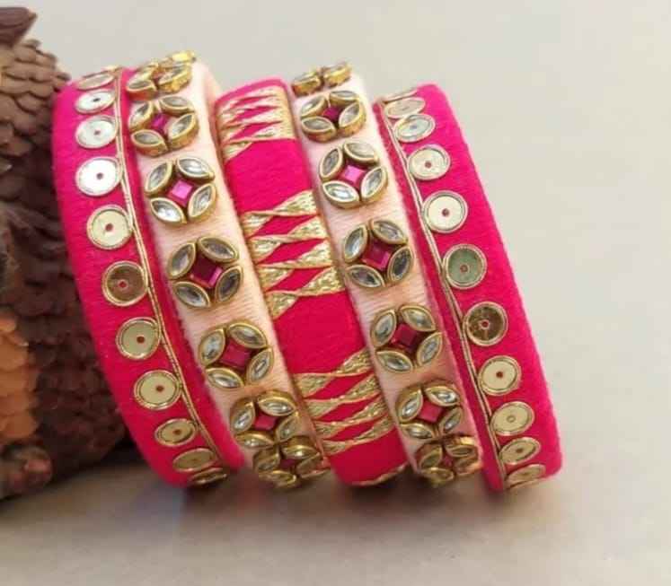 กำไลไหมหลากสีเครื่องประดับผู้หญิงสร้อยข้อมือ kundan สำหรับงานแต่งงานโปรดปราน haldi, mehindi, Sangeet, เบบี้อาบน้ำของขวัญกลับมา