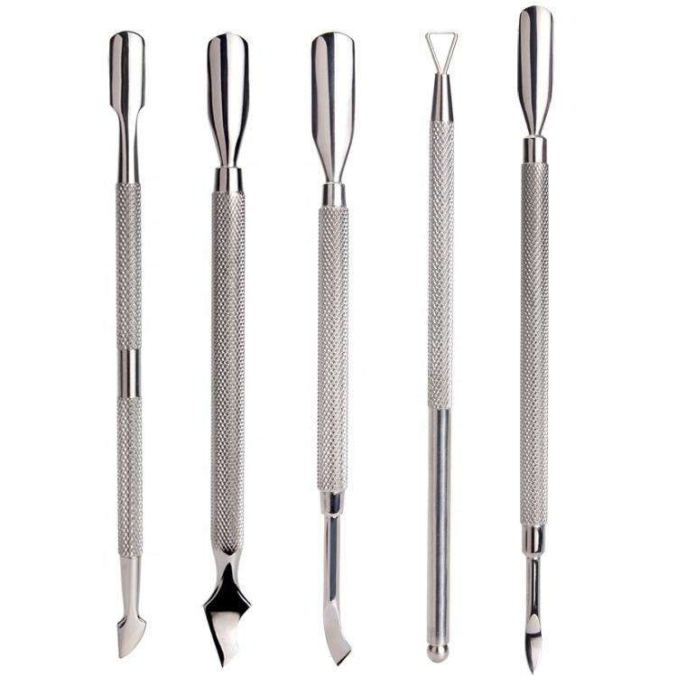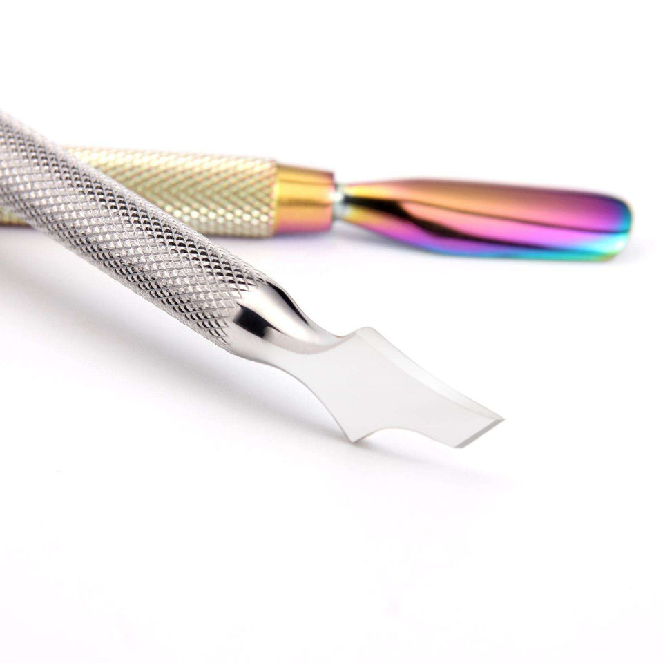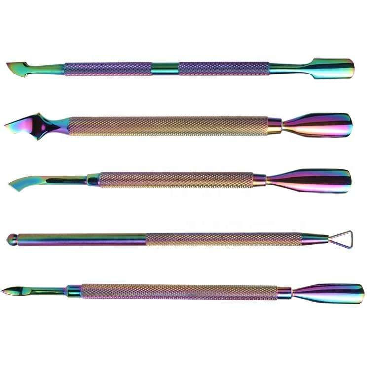 อุปกรณ์ดันเล็บสแตนเลสหลากสีอุปกรณ์กำจัดหนังกำพร้าทำเล็บแบบใช้ได้สองครั้งทนทานน้ำหนักเบาใช้ซ้ำได้