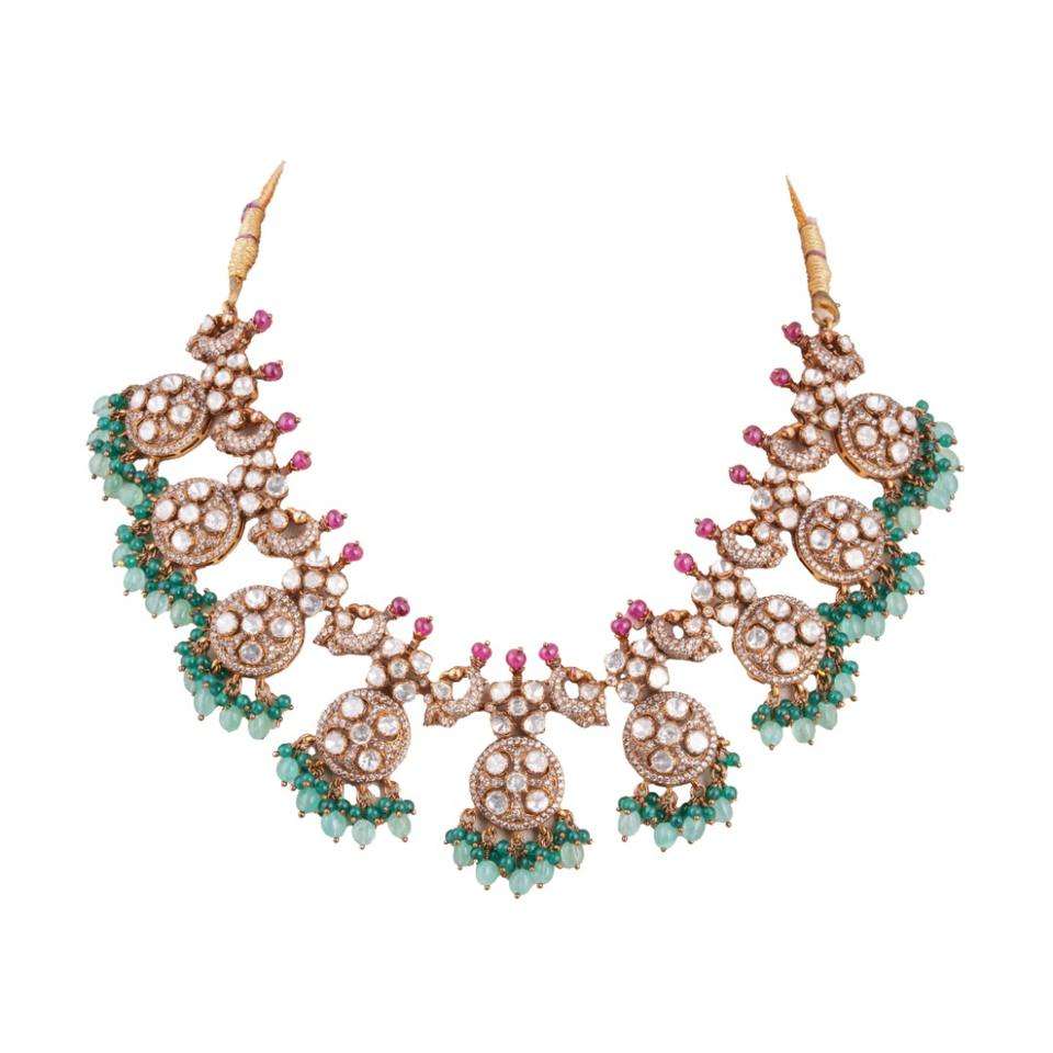 ชุดสร้อยคอและต่างหูเจ้าสาวประดับพลอยหลากสี ผลิตจากเงินแท้ Gajaah 925 เงินสเตอร์ลิงแท้ เครื่องประดับสำหรับงานเทศกาล