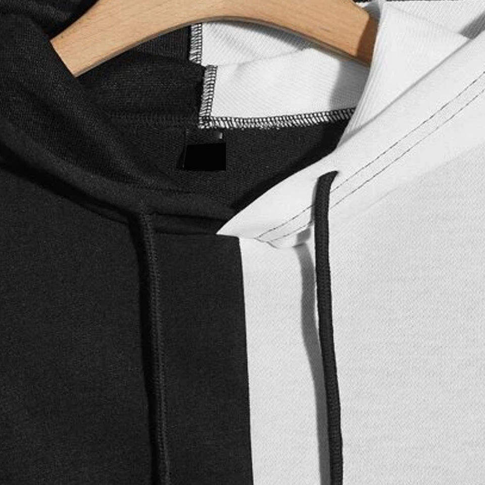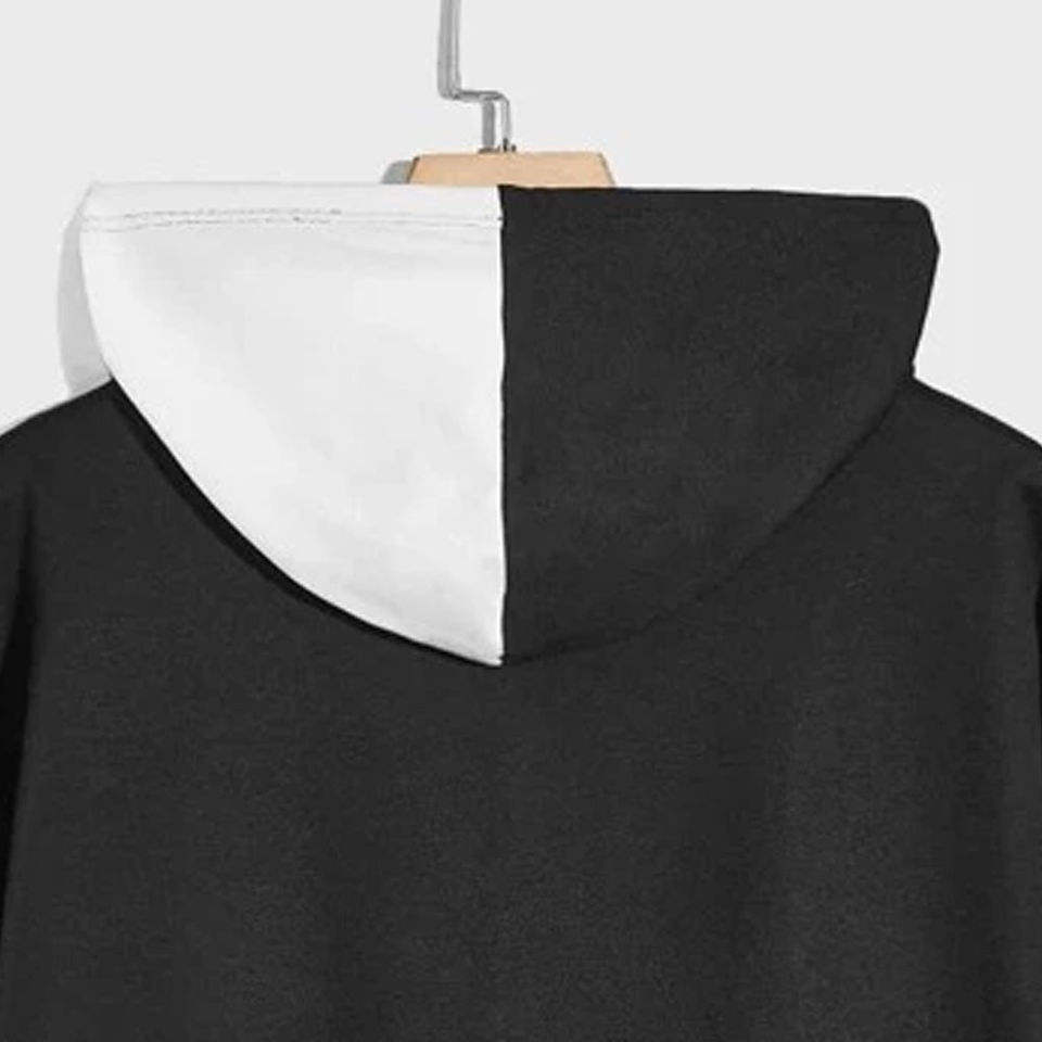 เสื้อฮู้ดผู้ชายสีดำขาวแบบลำลอง ผ้าฟลีซ สำหรับฤดูหนาว สไตล์สตรีทแวร์
