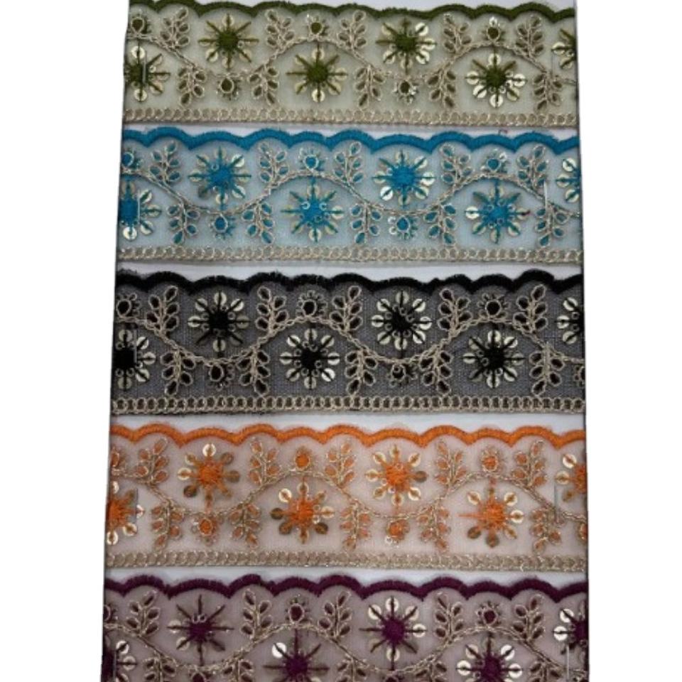 Soft Net Base with Multicolor Rayon/Polyester Thread Embroidery