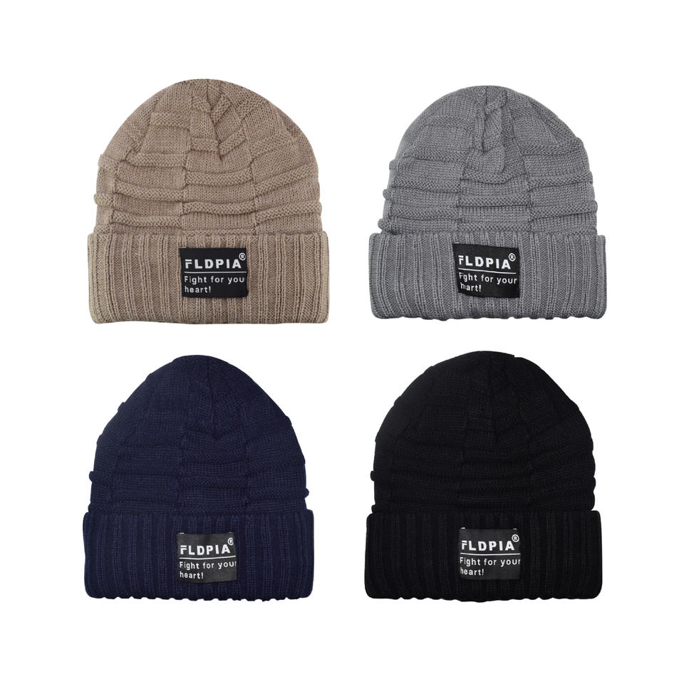 หมวกไหมพรมถักหลากสีอบอุ่นมีโครงหนาพร้อม3D ปักสีทึบสำหรับกลางแจ้งมีกระดุมข้อมือแบบถักยืดหยุ่น