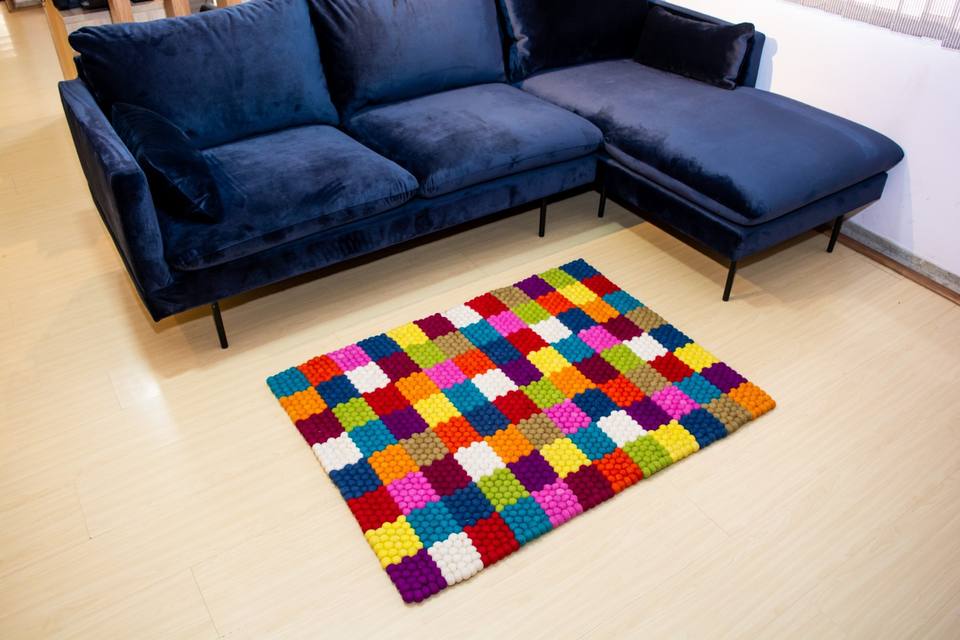 พรมสักหลาดขนแกะหลากสีเป็นมิตรกับสิ่งแวดล้อมพรมสีรุ้งตกแต่งพื้นสีสันสดใสสำหรับดิวาลี