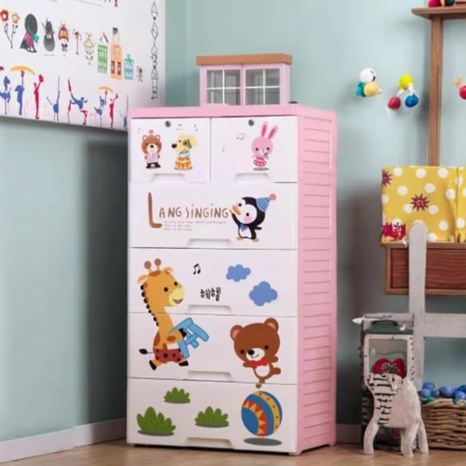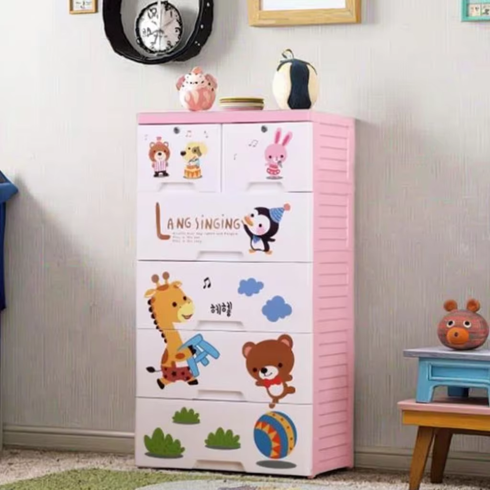 ชื่อผลิตภัณฑ์:ตู้เก็บของลายนกแก้วการ์ตูนหลากสีมี5ลิ้นชัก