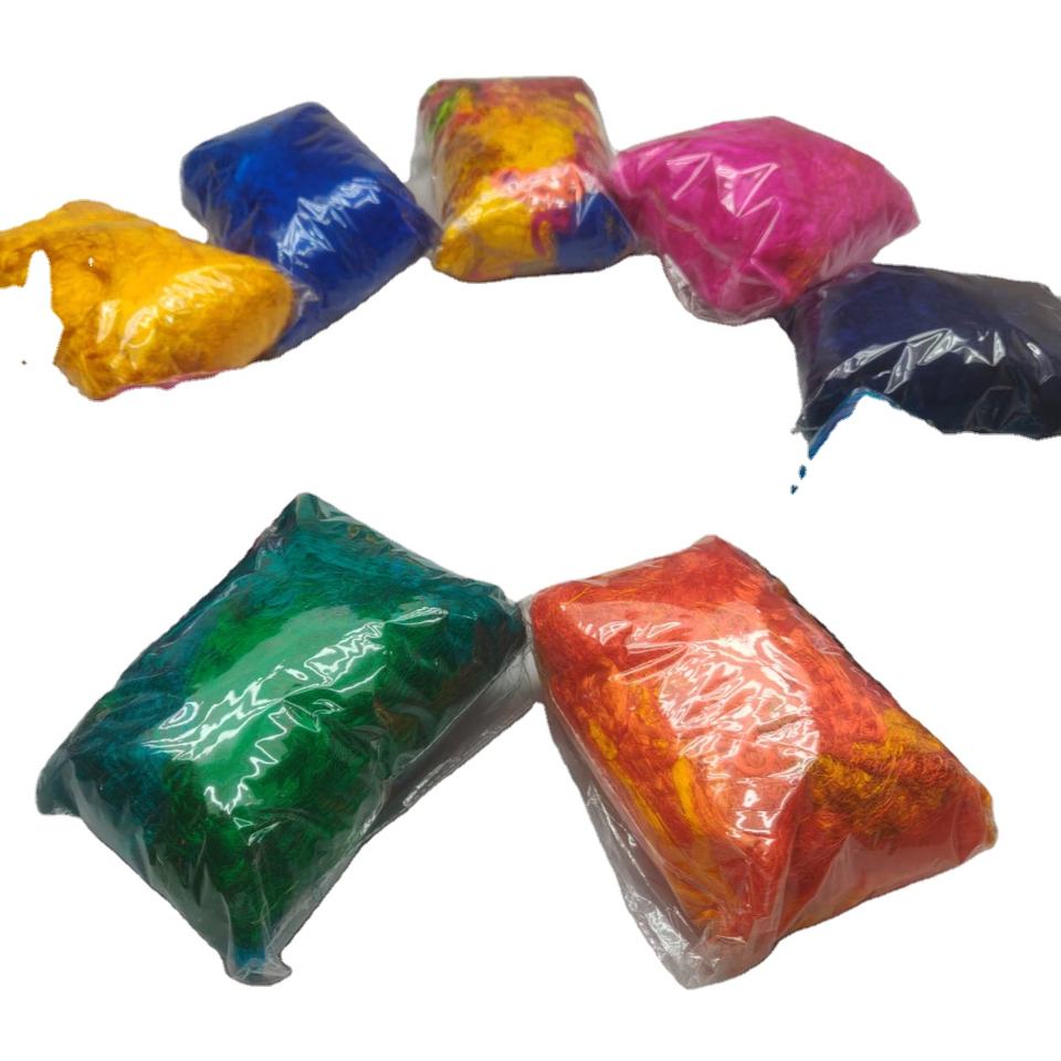 เส้นใยไหมส่าหรีย้อมสีหลากสีวัสดุรีไซเคิลสำหรับเชือกถักงานหัตถกรรมผ้าสักหลาด