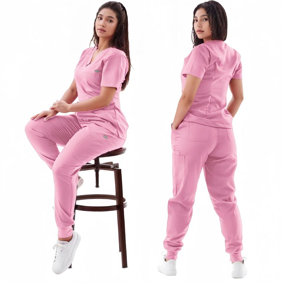ชุดวิ่งหลายสีชุดพยาบาลชุดทางการแพทย์ชุดยูนิฟอร์มการพยาบาลชุดเสื้อคอวีแขนสั้นสำหรับแพทย์เสื้อผ้าทางการแพทย์