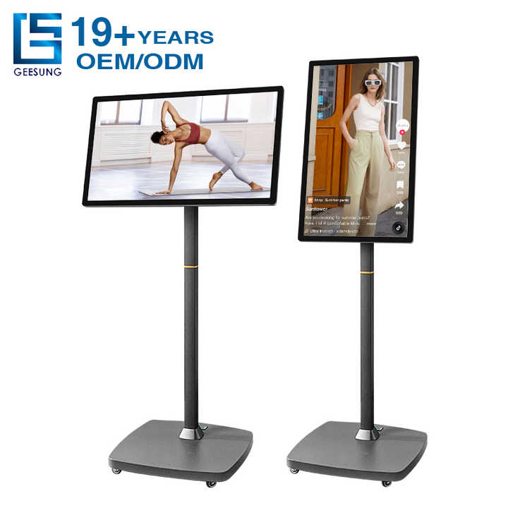 จอ LCD ไร้สาย27นิ้วอเนกประสงค์, หน้าจอสัมผัสโหมดถ่ายภาพบุคคลแบตเตอรี่ในตัวเคลื่อนย้ายได้แอนดรอยด์สมาร์ททีวีพร้อมขาตั้ง