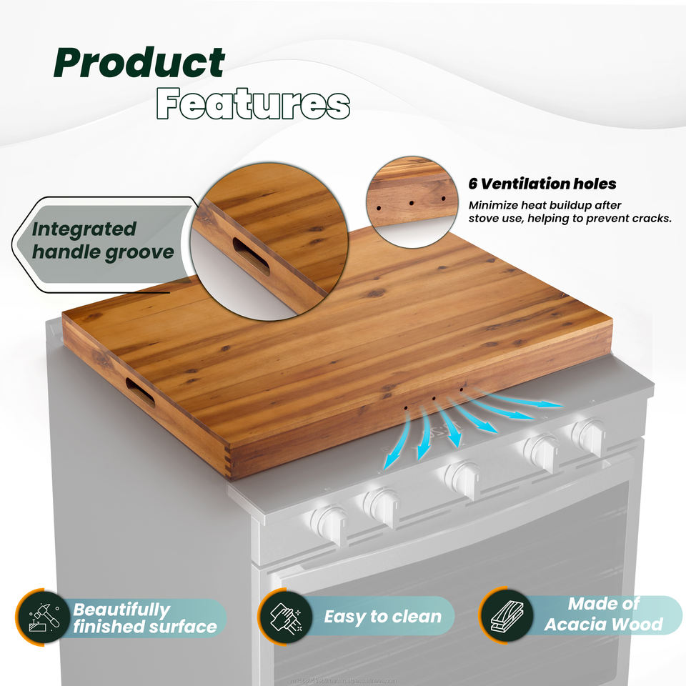 76X56ที่คลุมเตาเครื่องมืออเนกประสงค์สำหรับห้องครัวถาดไม้อะคาเซียเขียงไม้สำหรับเตียงอาหารเช้า