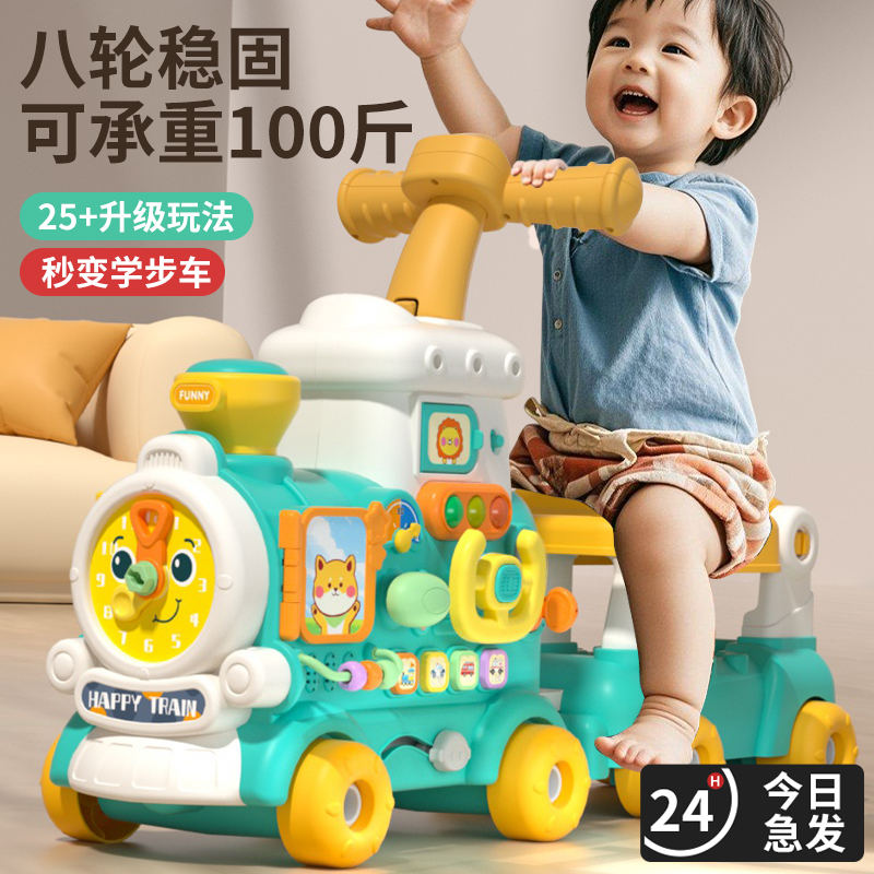 ไฟดนตรีมัลติฟังก์ชั่นสำหรับเด็กแบบ4 in 1สำหรับนั่งรถแบบดึงออกได้วอล์คเกอร์ของเล่นสำหรับเด็กทารกนั่งบนรถไฟ