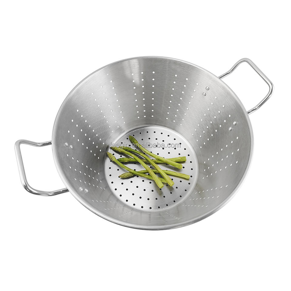 กระชอนกรองอาหารอเนกประสงค์ สแตนเลส ปลอดภัยต่อสิ่งแวดล้อม พร้อมที่จับและฐานตั้ง ใช้กับเครื่องล้างจานและเตาอบได้ สำหรับกรองผักและผลไม้