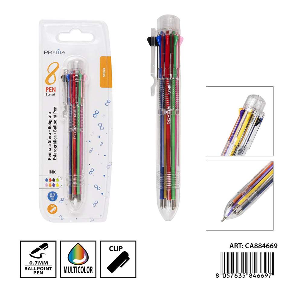 ปากกาลูกลื่น8สีขนาด0.7มม. อเนกประสงค์