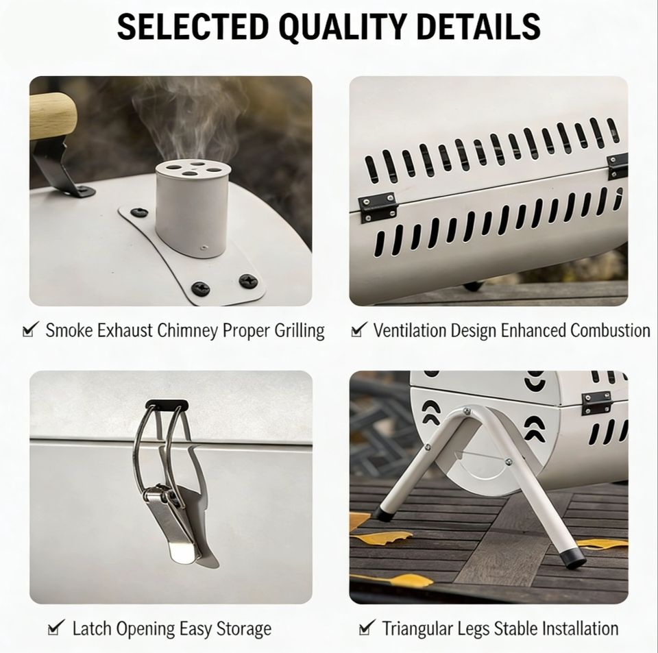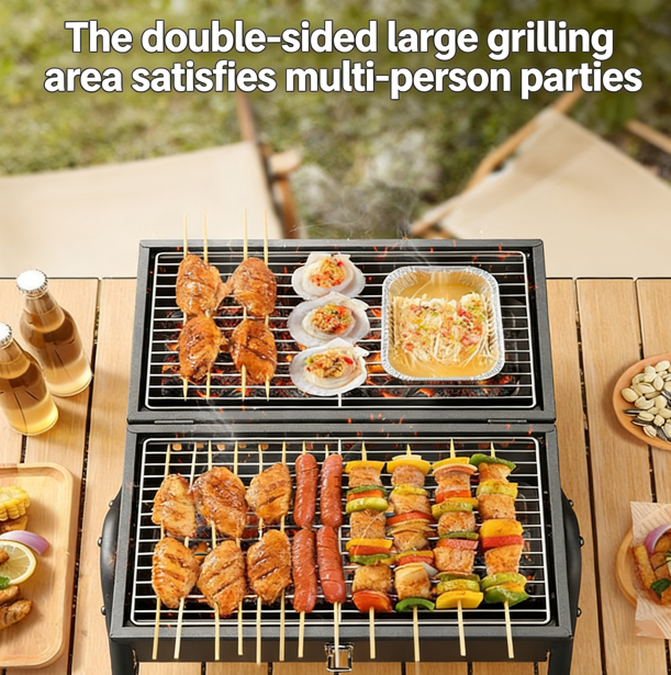 Multifunctional 2 in 1 Charcoal Grill Foldable Smoker BBQ for Outdoor Adventure Hiking Tailgate
