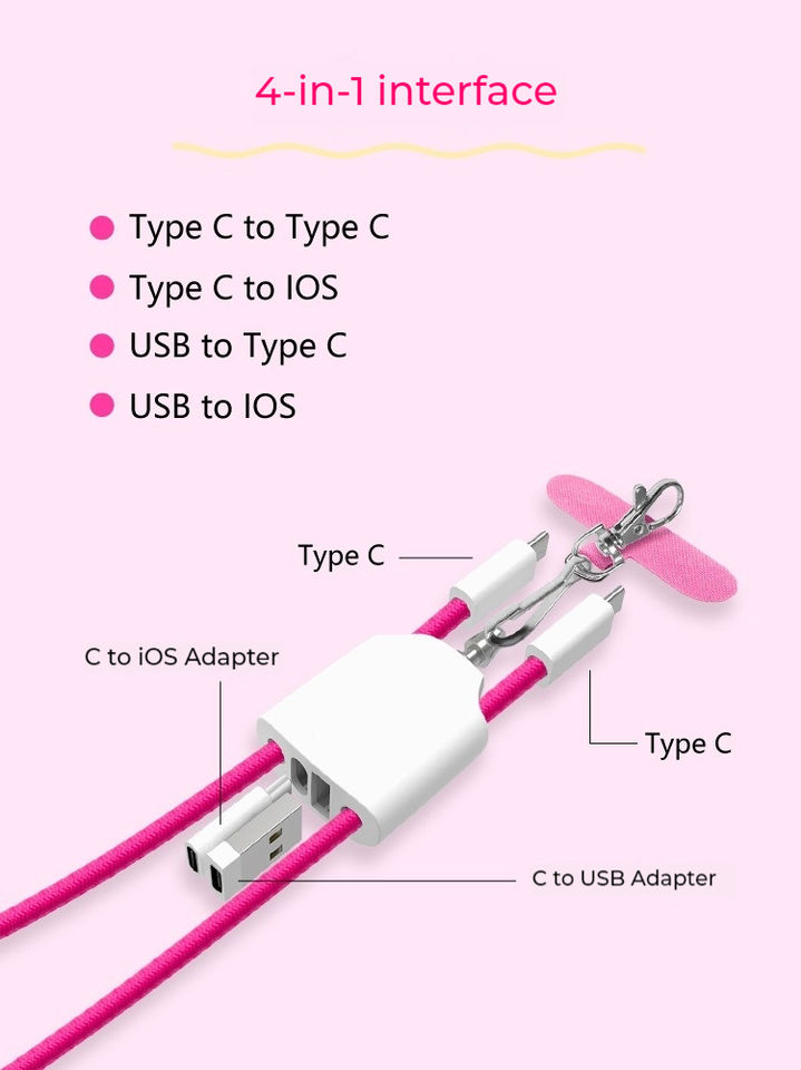 สายชาร์จอเนกประสงค์ 4-in-1 ชาร์จเร็ว 3A 60W แบบถัก สาย Type-C รองรับทุกการเชื่อมต่อ พร้อมปลอกหุ้ม PVC พกพาสะดวก ใช้เป็นพวงกุญแจได้