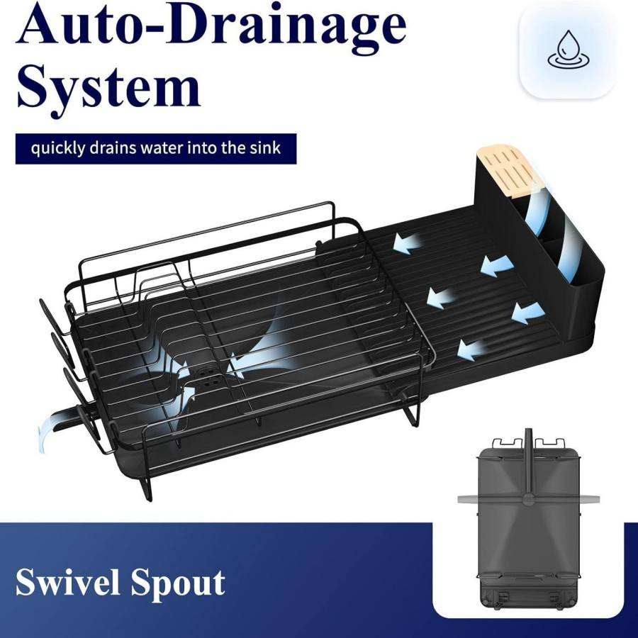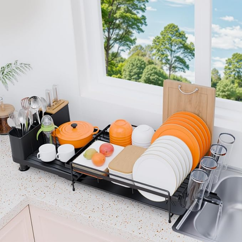 ชั้นวางจานอเนกประสงค์ป้องกันสนิม ขนาดใหญ่ 19.2-26.7 นิ้ว ชั้นวางจานแบบยืดหดได้ ที่เก็บของอเนกประสงค์
