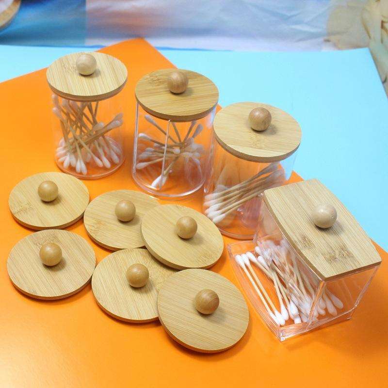 กล่องเก็บสำลีอเนกประสงค์ฝาไม้ไผ่ ทรงกลม/สี่เหลี่ยม สำหรับใส่สำลีแผ่น/สำลีก้าน ใช้ในครัวหรือใส่อาหารได้