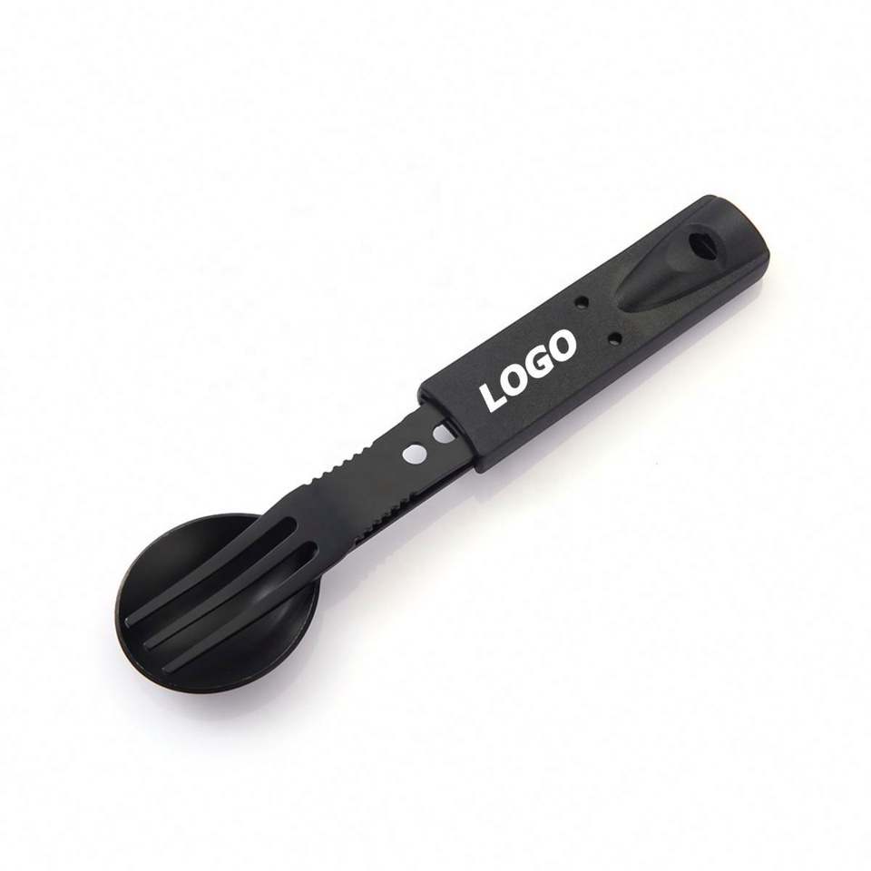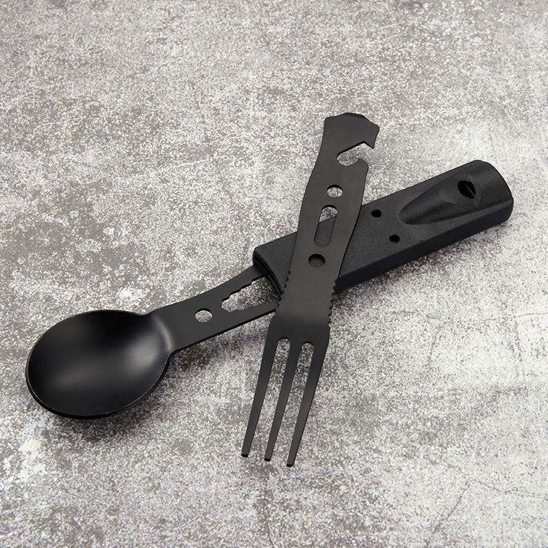 ชุดอุปกรณ์ตั้งแคมป์อเนกประสงค์ สแตนเลสสตีล มีด ช้อน ส้อม และนกหวีด สำหรับกิจกรรมเอาตัวรอดกลางแจ้ง