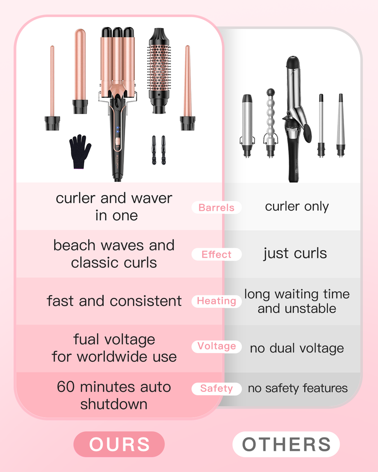 Vodana เตารีดดัดผมลอนแบบสามใบพัดพร้อมที่ม้วนผมให้ความร้อนแบบลอนคลื่นที่แสดงอุณหภูมิแบบ LED