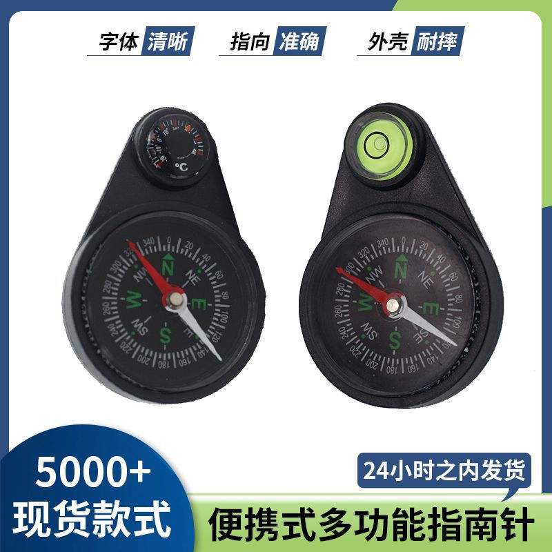 เข็มทิศอเนกประสงค์พร้อมเทอร์โมมิเตอร์และระดับน้ำสำหรับการตั้งแคมป์และการนำทางกลางแจ้ง ขนาด 64 มม. x 45 มม. หน้าปัดแบบเข็มชี้