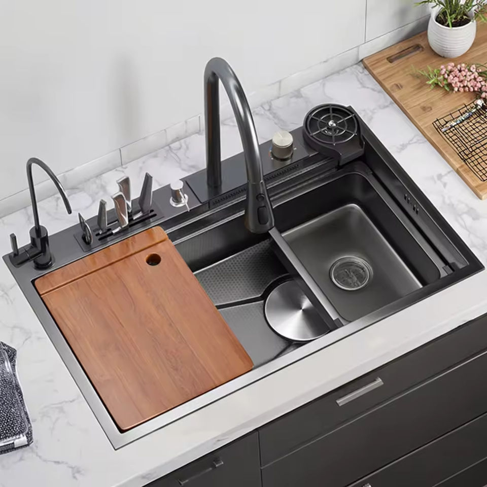 อ่างล้างจานสแตนเลสสำหรับน้ำตกอ่างล้างจานแบบเดี่ยวหรูหรามีหน้าจอแสดงดิจิตอลมัลติฟังก์ชันอ่างล้างจาน304แบบอัจฉริยะ