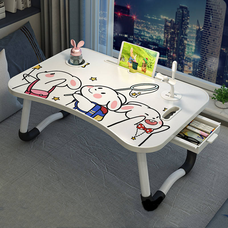 โต๊ะข้างเตียงอเนกประสงค์พับได้พร้อมลิ้นชักและที่วางแก้ว 60x40 ซม. สำหรับนักเรียนใช้เรียนที่บ้าน