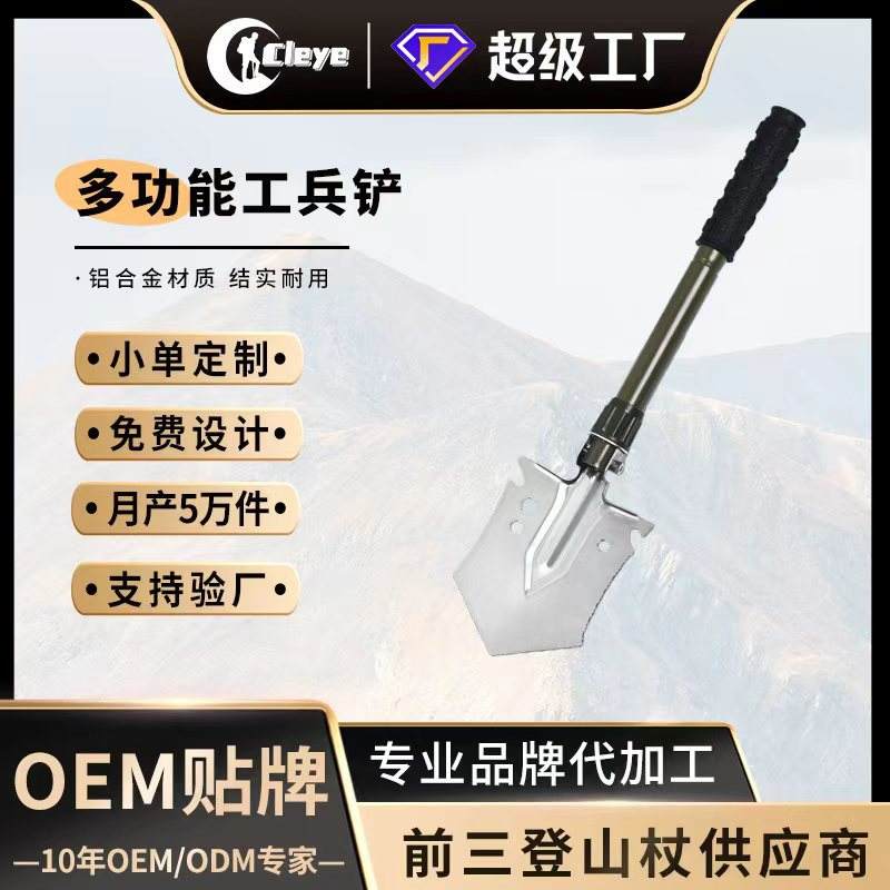 พลั่วสแตนเลสพับได้อเนกประสงค์ 4 ใน 1 สำหรับการตั้งแคมป์กลางแจ้งใช้ในกรณีฉุกเฉินพร้อมด้ามจับตามหลักสรีรศาสตร์
