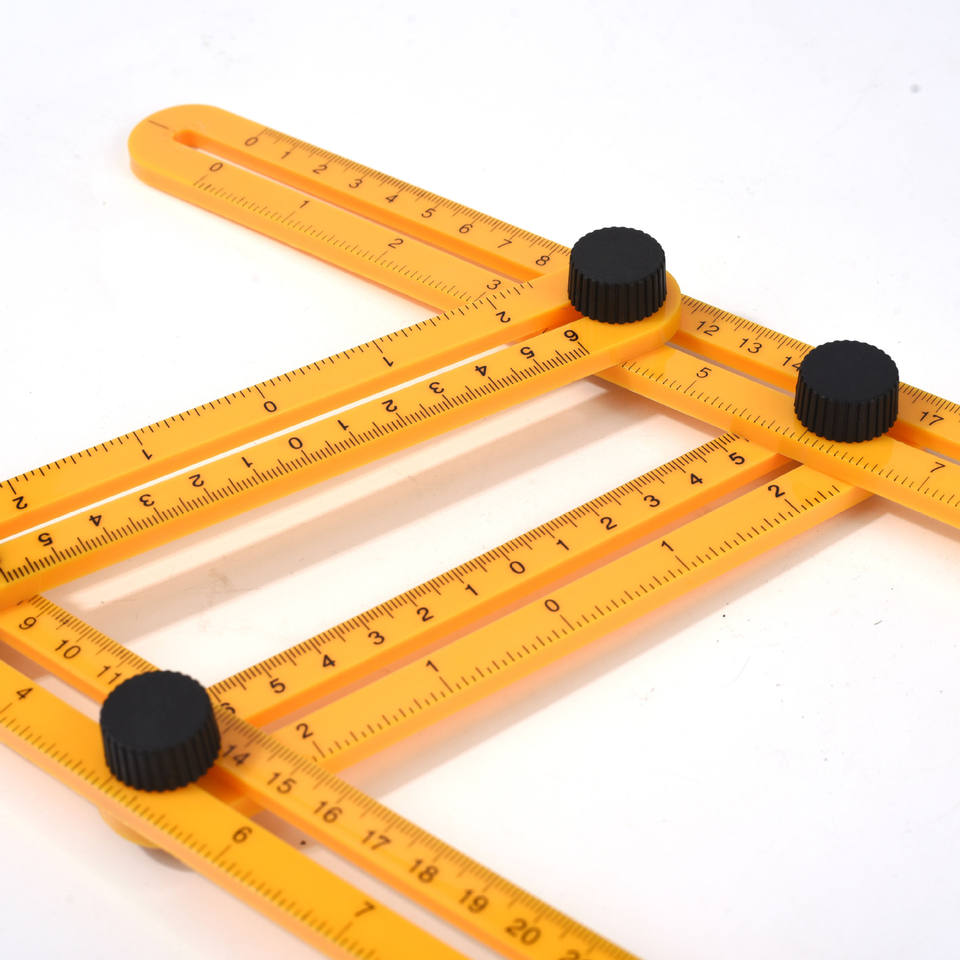 ไม้บรรทัดอเนกประสงค์แบบพับได้สี่ทบ สี่ด้าน ทำจากไม้ พร้อมด้วยสแตนเลสและพลาสติก ดีไซน์พับได้หลายมุม