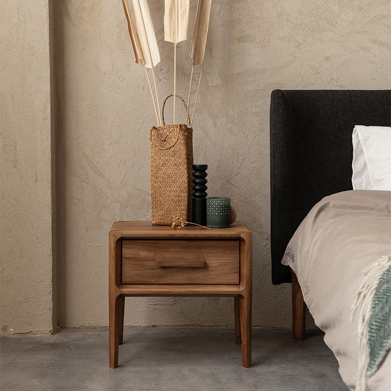 เฟอร์นิเจอร์ไม้สักนำเข้าจากต่างประเทศ ได้รับการสนับสนุนจากภาครัฐ โต๊ะข้างเตียงไม้เนื้อแข็งแท้ สำหรับห้องนอนใหญ่ สไตล์มิดนอร์ดิก