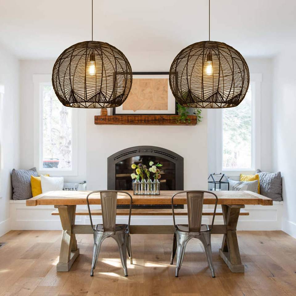 ที่คลุมโคมไฟหวายตกแต่งอย่างยั่งยืนสำหรับห้องนั่งเล่นและห้องครัวโคมไฟระย้าหรูหราทำด้วยมือขนาดใหญ่แบบเรียบง่ายอเนกประสงค์