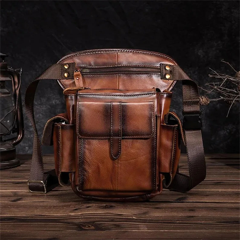 กระเป๋าส่งเอกสารหนังวัวอเนกประสงค์สำหรับผู้ชายกระเป๋าคาดเอวใส่โทรศัพท์มือถือพกพาง่ายมีหลายกระเป๋าลำลองสำหรับกีฬากลางแจ้ง
