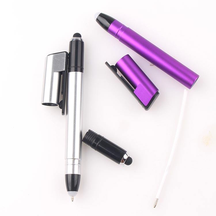ปากกาลูกลื่นพลาสติกอเนกประสงค์พร้อมที่วางโทรศัพท์มือถือ ไฟ LED และบริการพิมพ์โลโก้ตามสั่ง