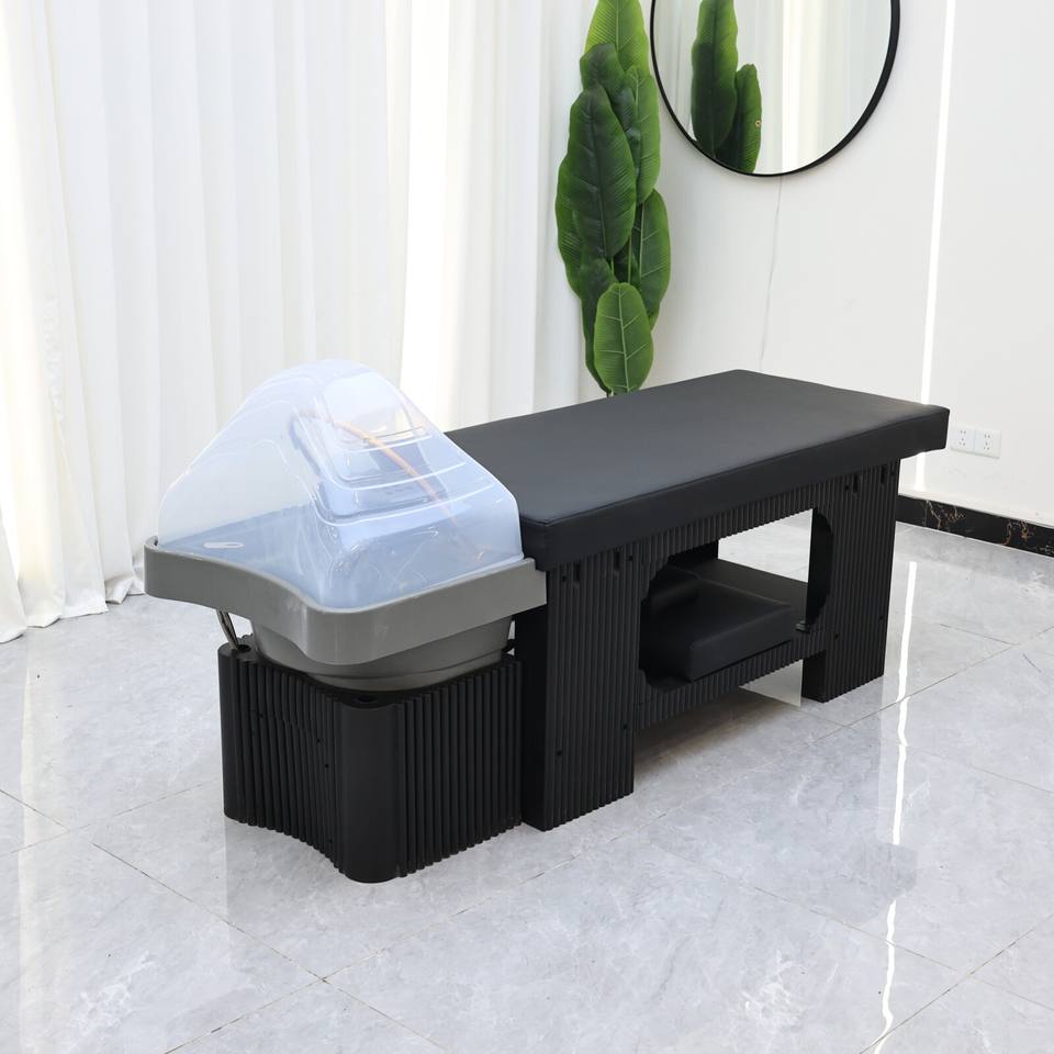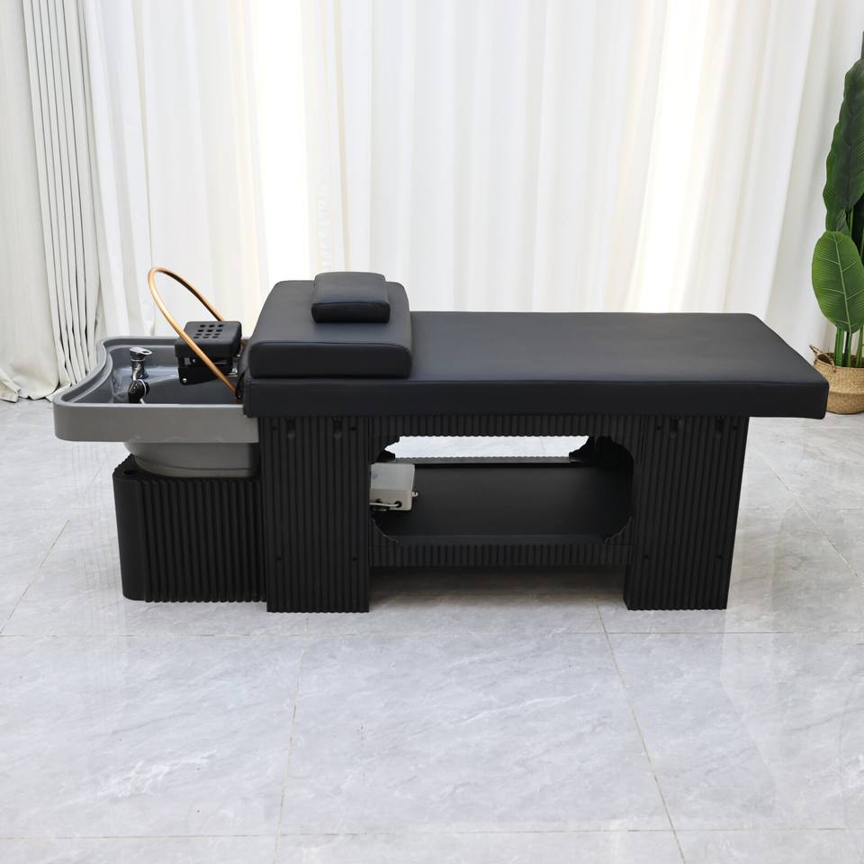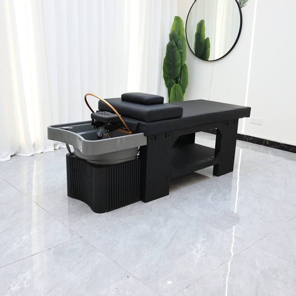 เก้าอี้สระผมอเนกประสงค์สไตล์ญี่ปุ่นยุคใหม่ พร้อมโครงไฟเบอร์กลาสหุ้มหนัง สำหรับร้านตัดผมและสปาบำบัดศีรษะด้วยน้ำ