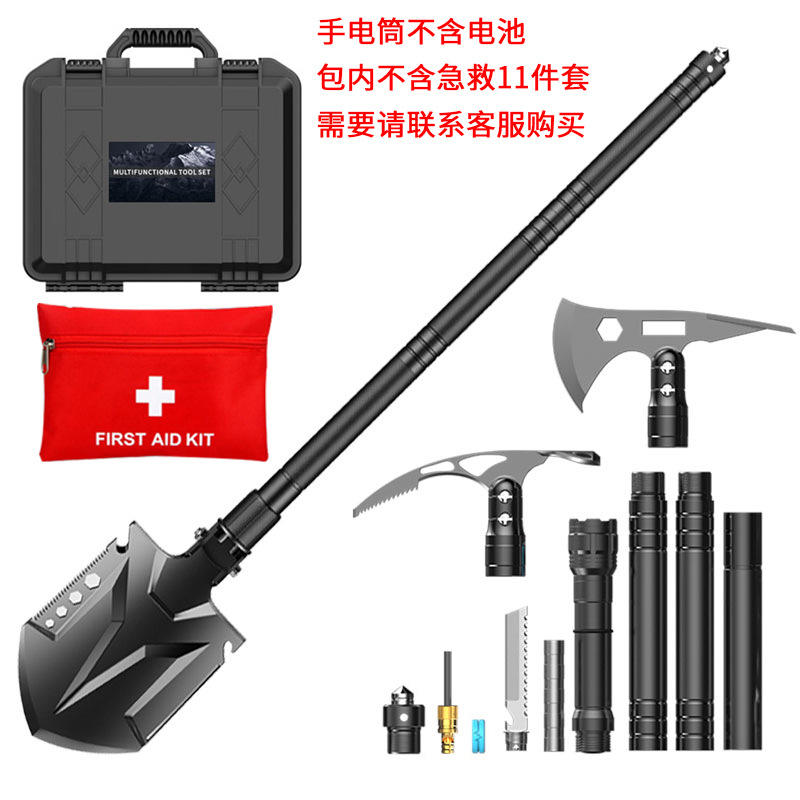 ชุดอุปกรณ์เอาตัวรอดกลางแจ้งอเนกประสงค์ อลูมิเนียมอัลลอยด์ พลั่ว ขวาน มีด ไฟฉาย ชุดเครื่องมือฉุกเฉินสำหรับตั้งแคมป์ สีเทา