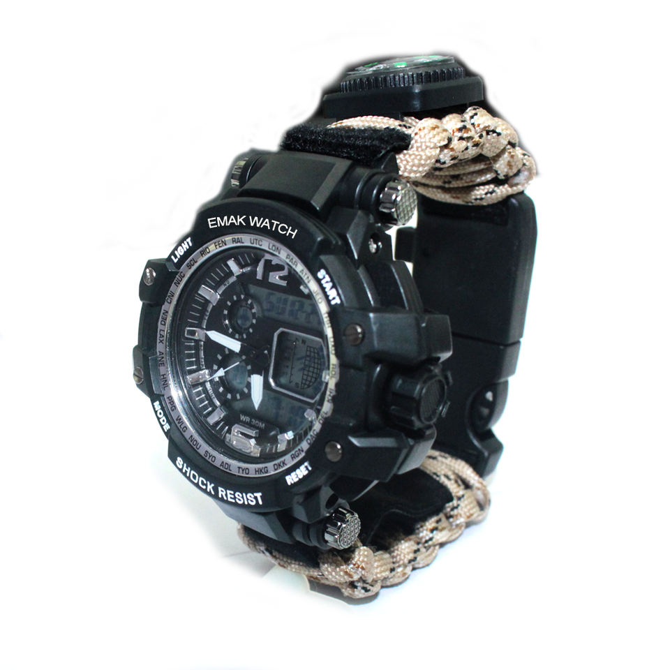 นาฬิกาข้อมือพาราคอร์ดอเนกประสงค์สำหรับเล่นกีฬาเอาตัวรอดกลางแจ้งตั้งแคมป์กู้ภัยฉุกเฉินเชือกนาฬิกายุทธวิธี