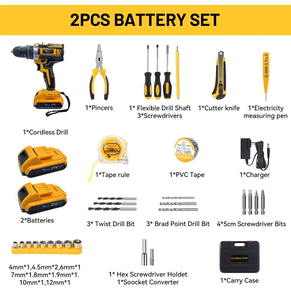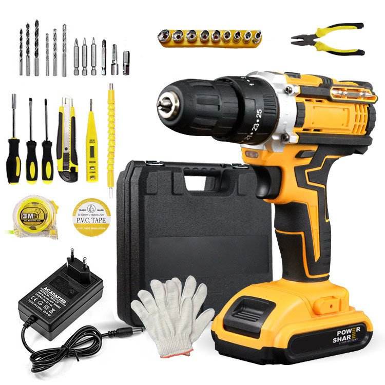 ชุดสว่านไฟฟ้าอเนกประสงค์แบบมืออาชีพ พกพาสะดวก ไร้สาย พร้อมหัวจับดอกสว่านแบบไม่ใช้กุญแจ และแบตเตอรี่แบบชาร์จได้ ปรับความเร็วได้