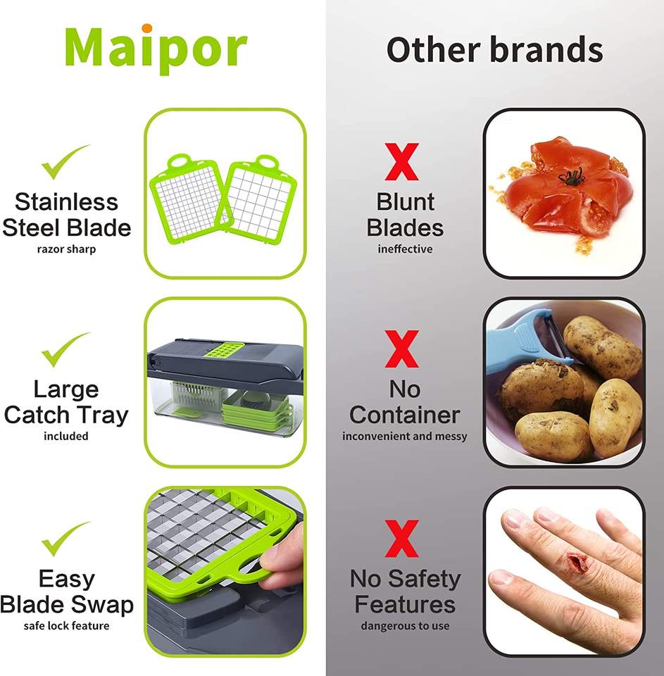 เครื่องหั่นผักอเนกประสงค์อัจฉริยะ ใบมีดสแตนเลส ล้างในเครื่องล้างจานได้ อุปกรณ์ครัว 14 ชิ้น เครื่องมือหั่นผลไม้แบบใช้มือ