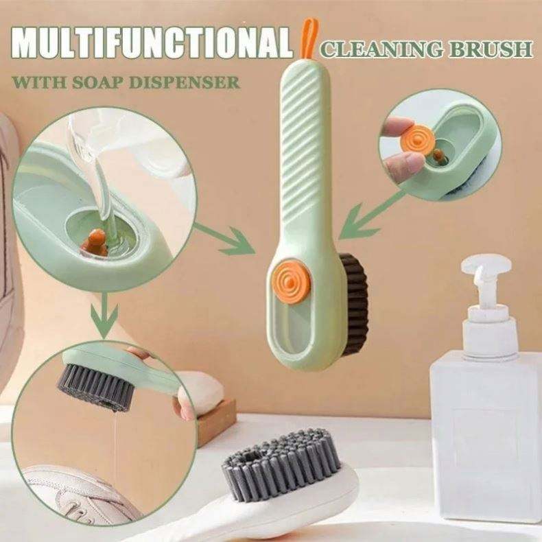 แปรงขัดรองเท้าขนนุ่มอเนกประสงค์ ด้ามยาว พร้อมระบบเติมน้ำยาอัตโนมัติ ใช้ได้กับรองเท้า เสื้อผ้า และแผ่นรองขัด