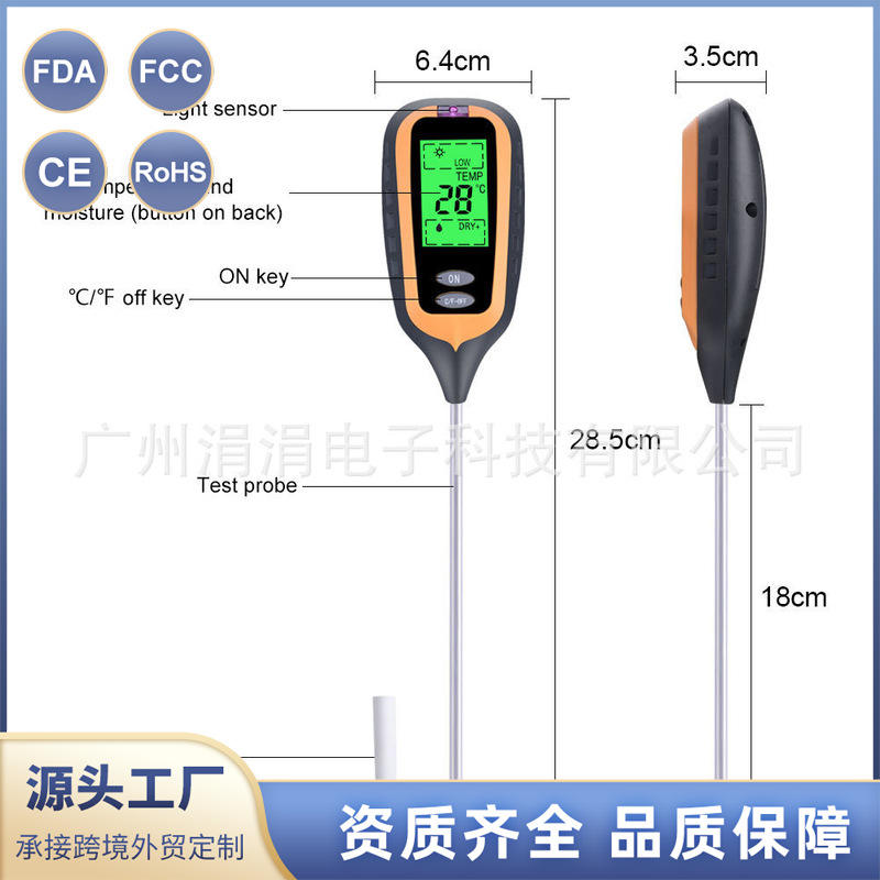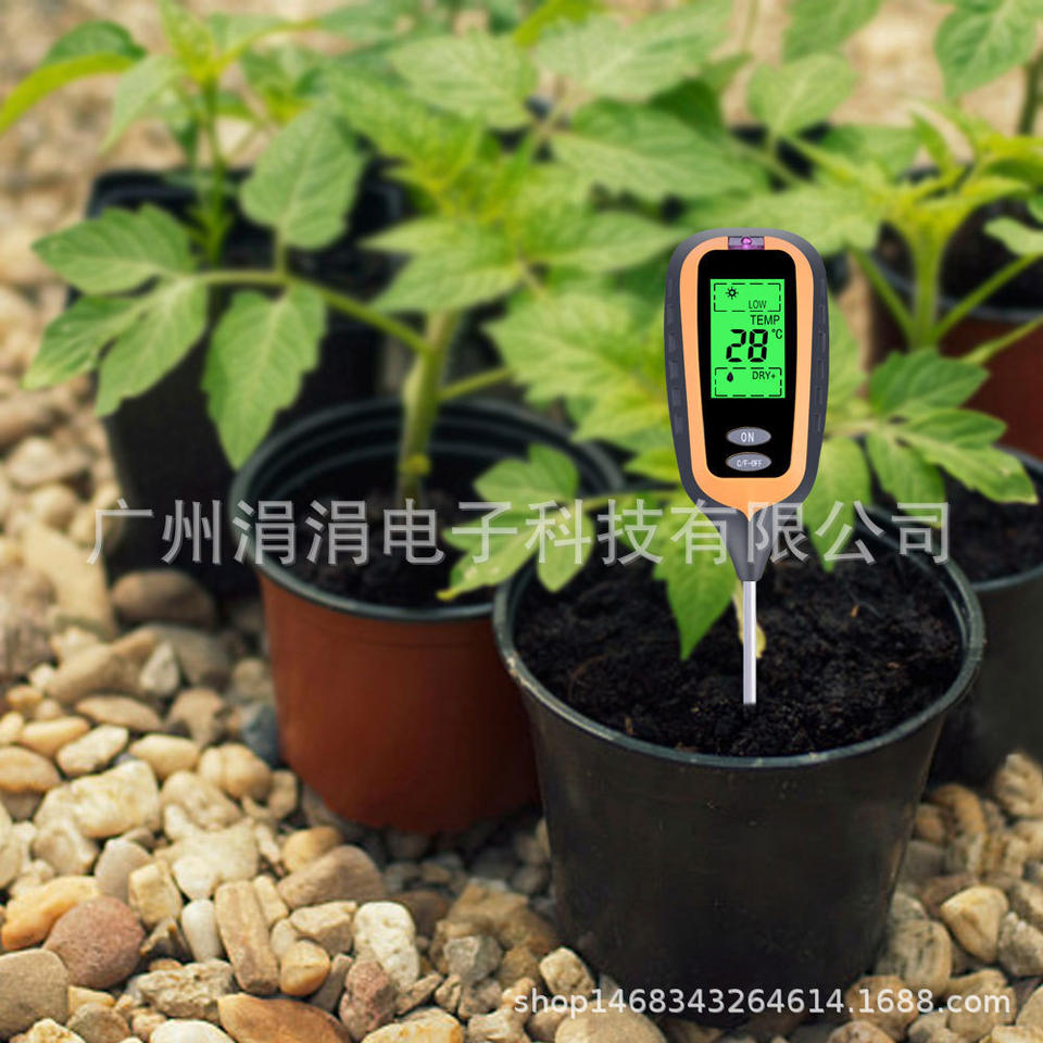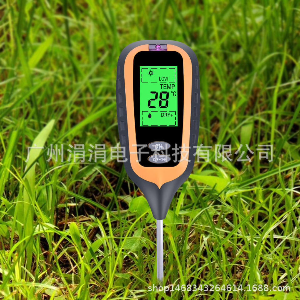 เครื่องทดสอบดินอเนกประสงค์ 6.4x3.5 ซม. จอแสดงผลดิจิตอล วัดความชื้น อุณหภูมิ แสง และค่า pH สำหรับการเกษตร