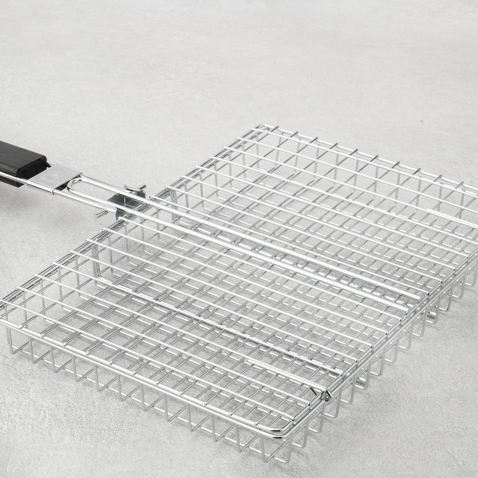 ตะแกรงย่างบาร์บีคิวอเนกประสงค์ สแตนเลส พร้อมด้ามจับไม้พับได้ สำหรับย่างนอกบ้าน ใช้ย่างปลา ไก่ เนื้อ ข้าวโพด เป็นมิตรกับสิ่งแวดล้อม