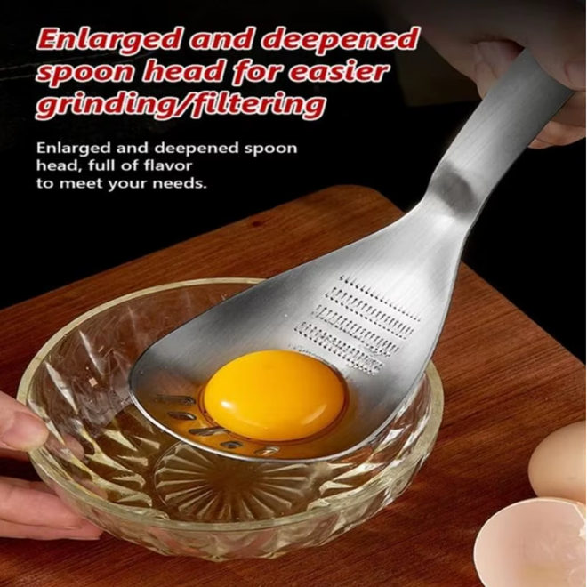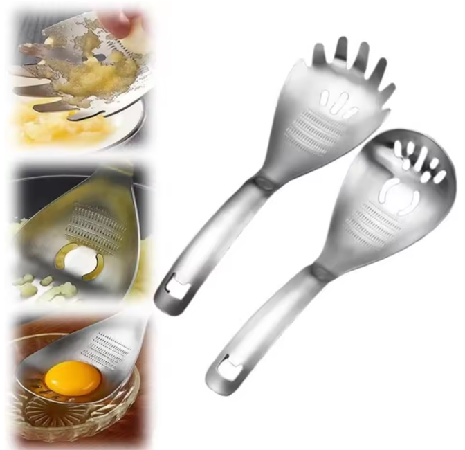 ช้อนสแตนเลสอเนกประสงค์ ขูดกระเทียม บดมันฝรั่ง ตักพาสต้า เปิดขวด แยกกาก ช้อนทำอาหาร
