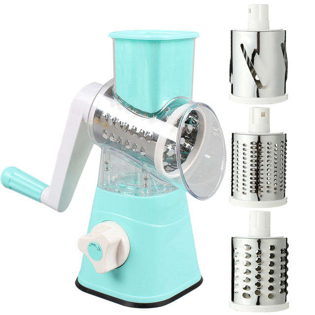 เครื่องตัดผักอเนกประสงค์แบบหมุนมือ 3 in 1 ที่ขูดผักแบบโรตารี่สำหรับครัว