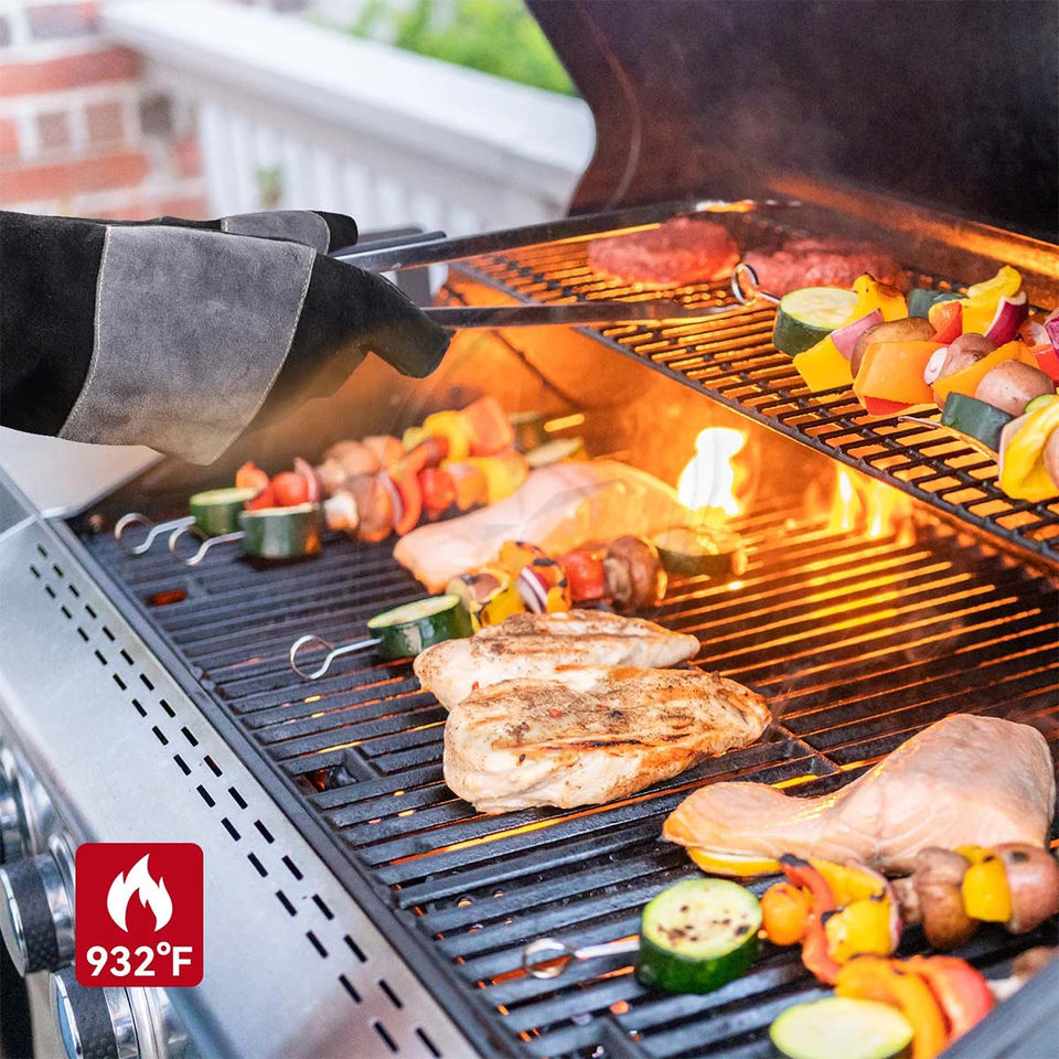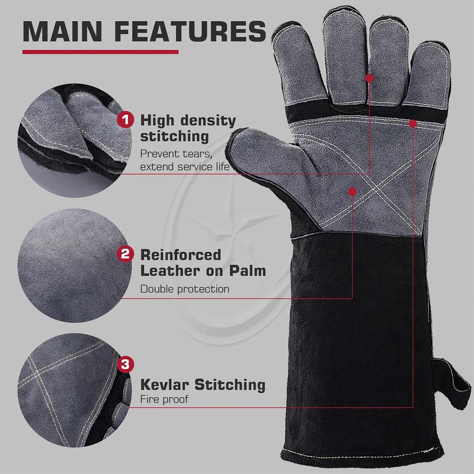 ถุงมือเชื่อมเตาย่างบาร์บีคิวแบบป้องกันความร้อนใช้งานได้หลากหลายถุงมือหนังถุงมือเชื่อมขนาด16นิ้วจากปากีสถาน
