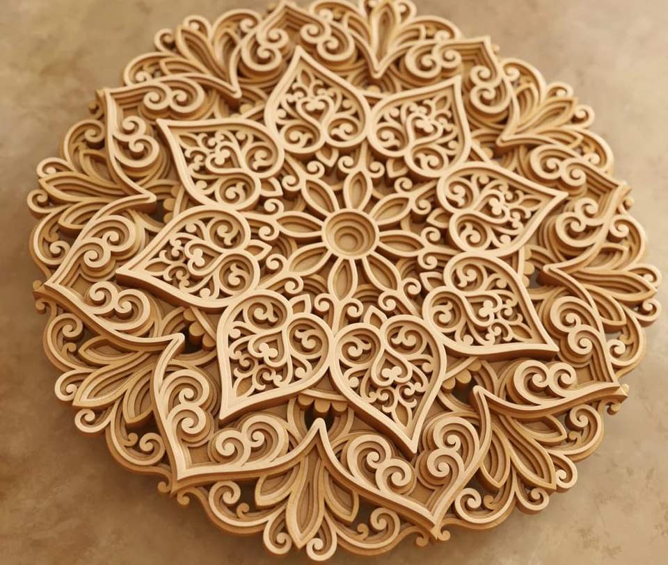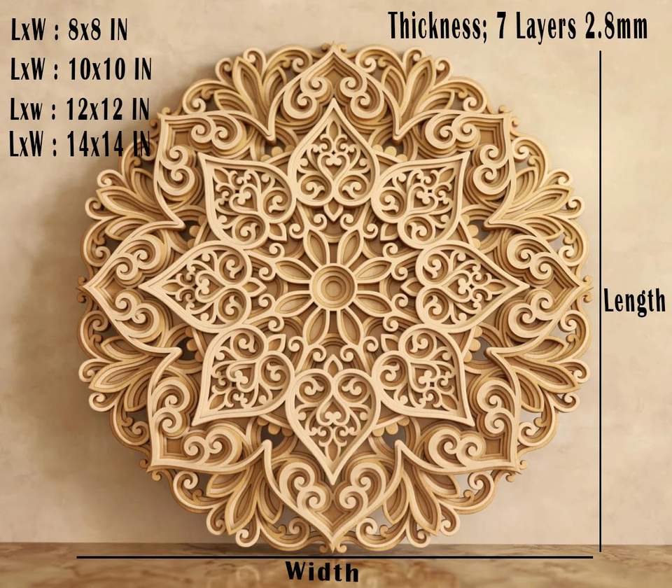 งานศิลปะตกแต่งผนังลายดอกไม้แมนดาลาหลายชั้น 3 มิติ – งานตัดลายแมนดาลาจากไม้ MDF – งานศิลปะตกแต่งลายแมนดาลาจากไม้สำหรับบ้านและสำนักงาน