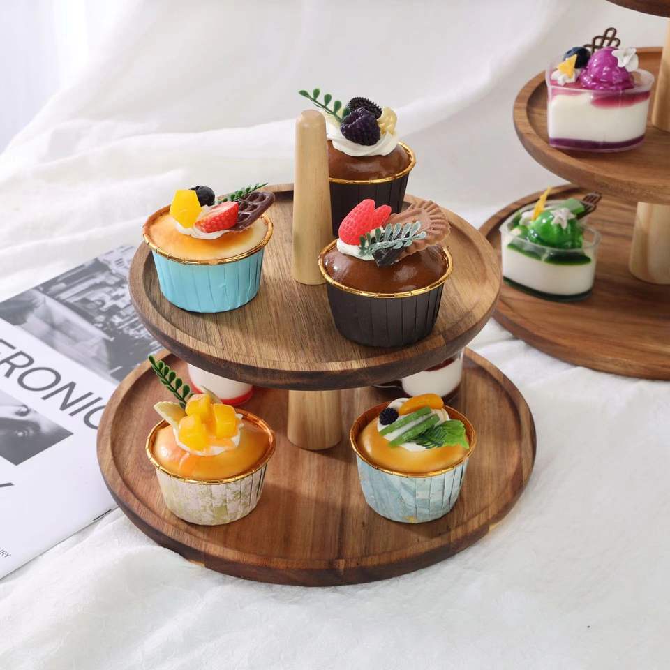 ชั้นวางเค้กอะคาเซียทรงกลมหลายชั้น