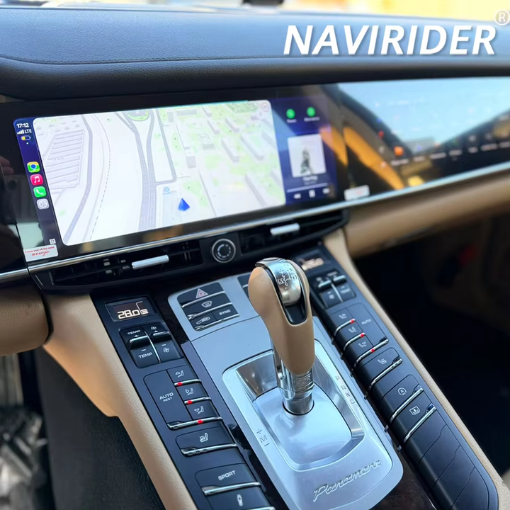 เครื่องเสียงติดรถยนต์ระบบแอนดรอยด์แบบมัลติมีเดีย หน้าจอคู่ สำหรับรถยนต์ Porsche Panamera พร้อมระบบนำทาง GPS, Apple CarPlay, เครื่องเล่นวิดีโอ และวิทยุ
