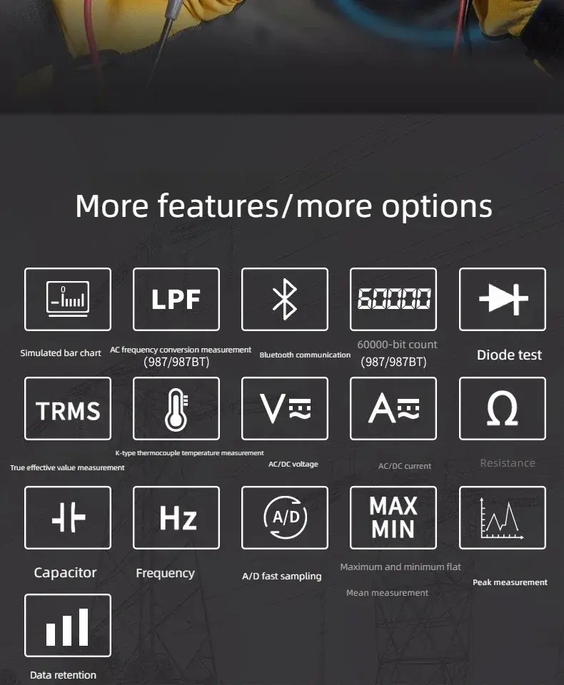 Multimetro industriale ad alta precisione Misuratore multifunzionale per elettricista di tensione CA/CC DT-985/987