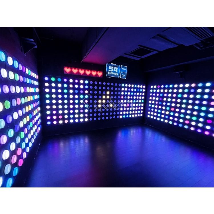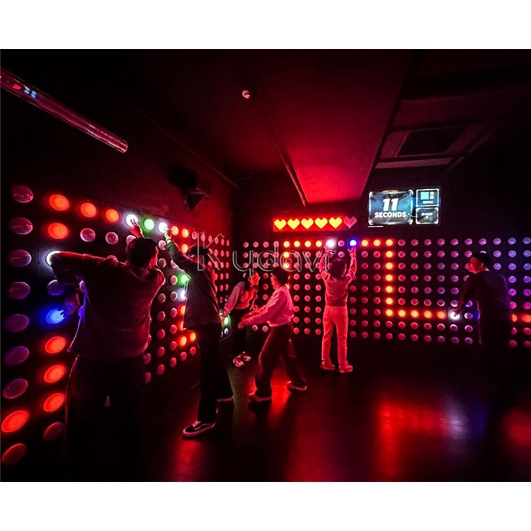 เกมติดผนังพิกเซลแบบอินเทอร์แอคทีฟหลายผู้เล่นในร่มพร้อมปุ่มไฟแอลอีดี