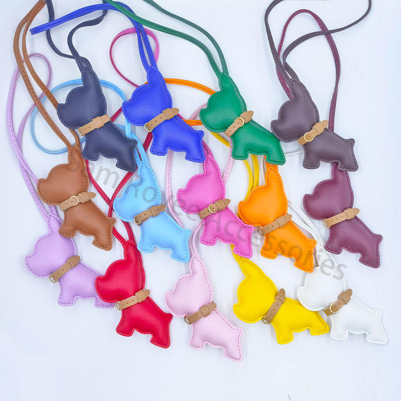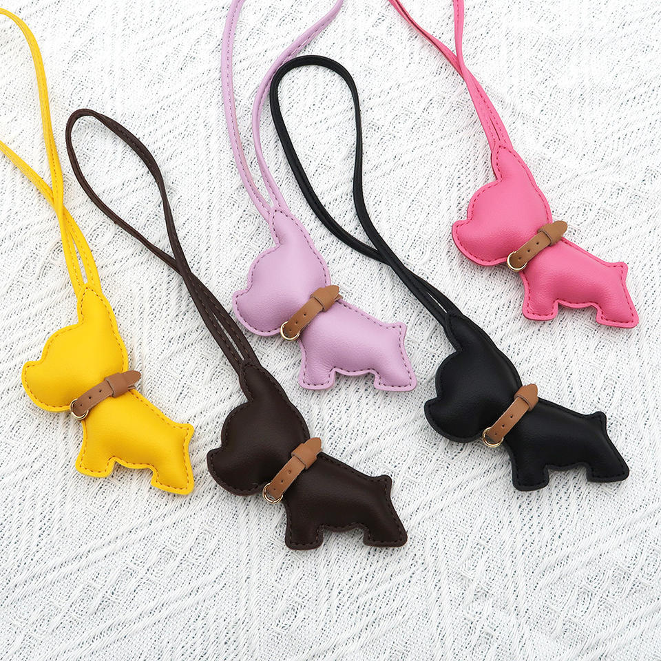 พวงกุญแจหนัง PU หลายสี รูปสุนัขพันธุ์เฟรนช์บูลด็อก พร้อมสายคล้องยาว จี้ห้อยกระเป๋า จี้ห้อยพวงกุญแจ อุปกรณ์ตกแต่งกระเป๋า
