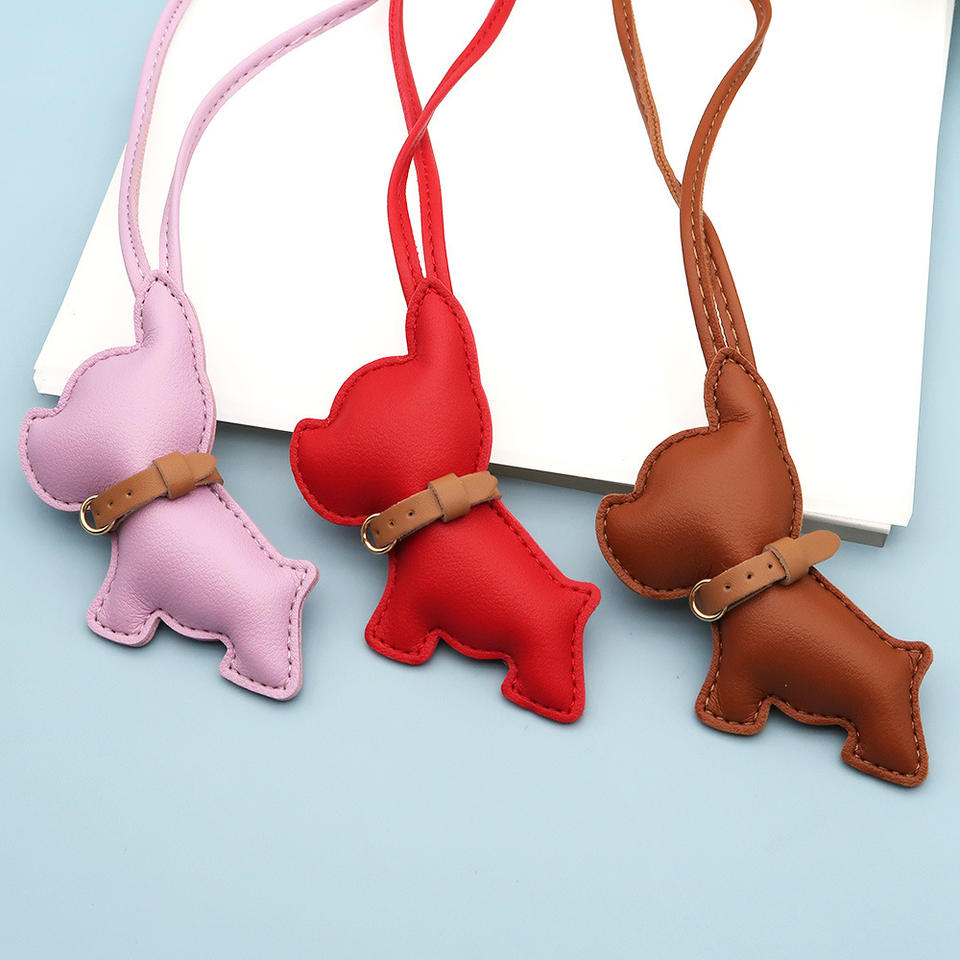 พวงกุญแจหนัง PU หลายสี รูปสุนัขพันธุ์เฟรนช์บูลด็อก พร้อมสายคล้องยาว จี้ห้อยกระเป๋า จี้ห้อยพวงกุญแจ อุปกรณ์ตกแต่งกระเป๋า