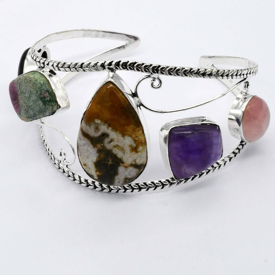 อัญมณีหลายแบบกำไลข้อมือเงินโบราณปรับได้เครื่องประดับแฟชั่นดีไซน์โบราณแบบดั้งเดิมเครื่องประดับโอปอลอัญมณี